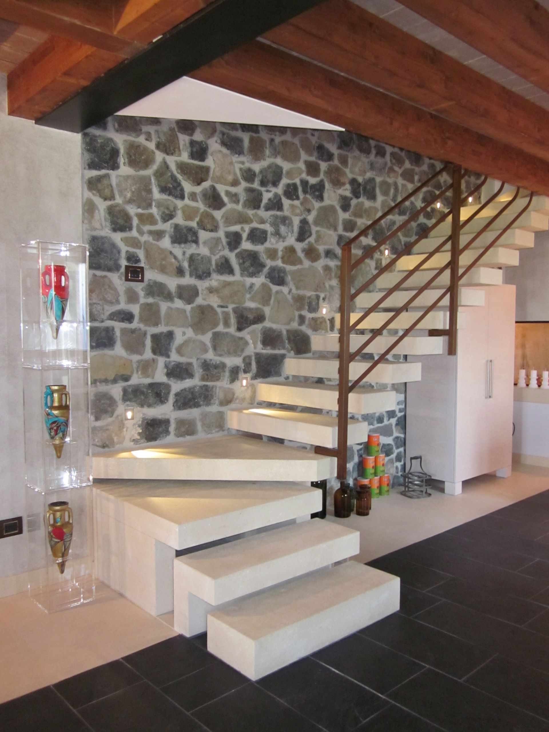 Scale in Pietra di Vicenza o in marmo interne o esterne, scale a massello autoportanti o con strutture in metallo o legno, scale a giorno o a chiocciola